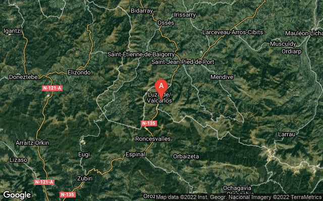 Chokoko Borda est une ancienne bergerie de style basque entièrement rénovée, sur les hauteurs du village d'Arnéguy, village frontalier avec l'Espagne, proche des ventas (magasins de frontière) et à 12 km de St Jean Pied de Port où vous trouverez tous commerces et services. C'est le point de départ idéal de nombreuses activités de plein air, randonnées, pêche, cueillette de champignons en saison. Située à 400m d'altitude et à 3 km du bourg, cette bergerie de 60m2, prolongée d'une terrasse couverte de 18m2, avec vue sur la montagne est indépendante de la maison des propriétaires et peut accueillir 5 personnes. Elle est composée d'un séjour, d'une cuisine ouverte équipée et aménagée, de 2 chambres (3 lits en 90 et 1 lit en 140), d'une salle d'eau avec cabine de douche et d'un w-c séparé. L'accès wifi est gratuit. Animal en supplément (50€/semaine ou 8€/jour)